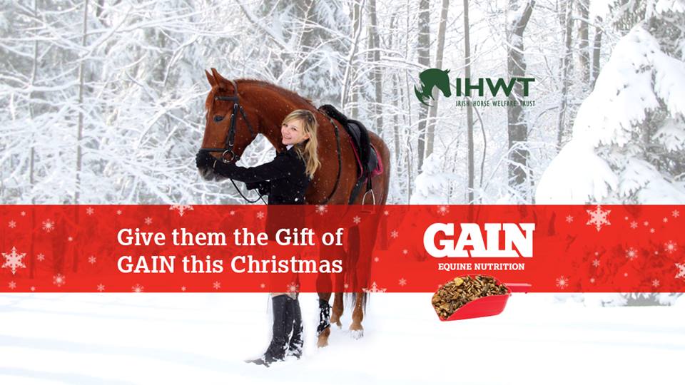 GAIN Equine Nutrition launch their ‘Give them the gift of GAIN this Christmas’ campaign on Friday December 8 th. The campaign will run for two weeks, right up until Friday December 22nd . To support the campaign all you need to do is upload a selfie of you and your horse or pony with a short caption and tag the GAINequinenutrition Facebook page in your photo. For each selfie uploaded GAIN Equine Nutrition will donate a scoop of horse feed to The Irish Horse Welfare Trust. New to the campaign this year for 2017: GAIN have added the chance for one lucky winner to receive a Canvas print of their selfie. All selfies uploaded between December 8 th – 22nd will be entered into the draw for a chance to win the canvas print. The Irish Horse Welfare Trust (IHWT) cares for approx 60 horses and ponies at its dedicated centre in Woodenbridge, Co Wicklow. Established in 1999 to help the plight of horses in Ireland they are dedicated to the rescue, rehabilitation and re-homing of abused and neglected horses and ponies. GAIN Equine Nutrition is the official feed partner to the IHWT and is committed to supporting the charity in their fantastic efforts to rescue and rehabilitate neglected horses and ponies.