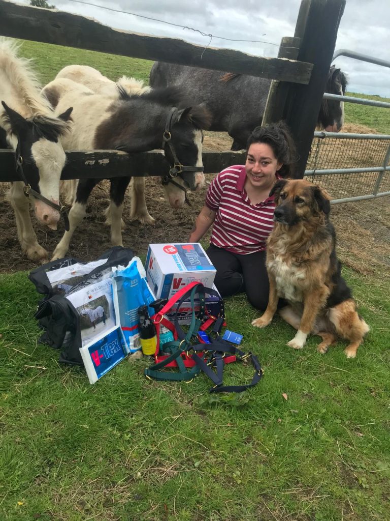 The IHWT is veery grateful to Orchard Equestrian for donating a huge quantity of vital items for our rescue horses and ponies. Items include, fly sheets, fly masks, fly spray, headcollars, first aid supplies, first aid products and much more. Orchard Equestrian is an Irish based Equestrian business where you can find all your favourite products at the best prices. Thank you Orchard Equestrian. Photo shows staff member Amber with Darwin the dog and some of our equine residents!